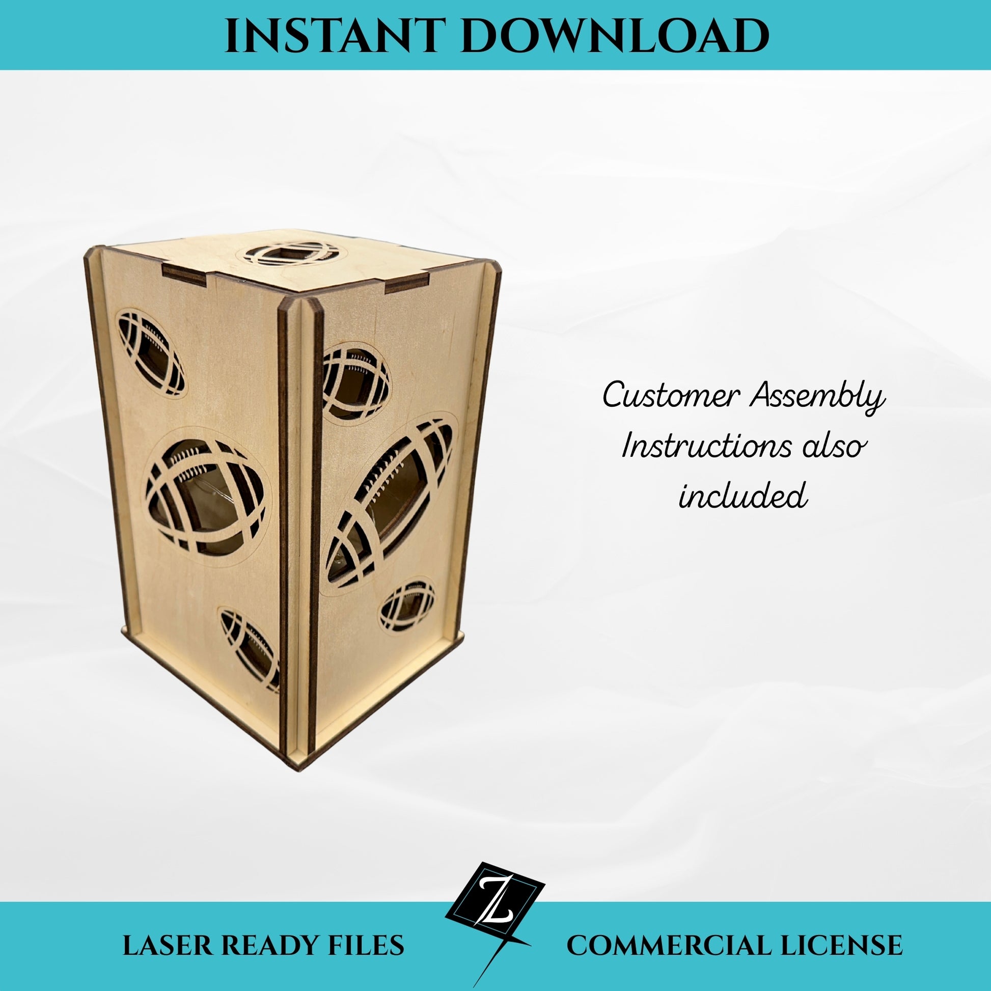 Kick off your product line with this football lantern design file — perfect for sports fans, team gifts, or themed décor. The slot-together lantern requires no glue or hardware and stores flat for easy shipping and storage. Great for laser owners selling personalized or seasonal items